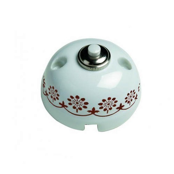 Выключатель 1-клавишный кнопочный Fontini GARBY, открытый монтаж, белый/коричневывй, 30310132